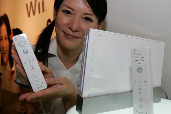 Mithilfe der Fernbedienung „Wii Remote“ können Bewegungsabläufe an die Konsole Nintendo Wii übertragen werden.