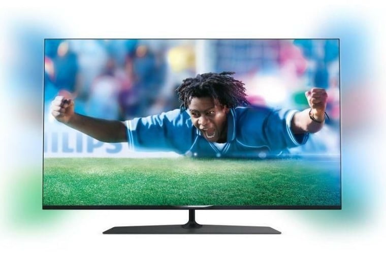 Mit 55 Zoll Bildschirmdiagonale fällt der Philips 7800 Ultra-HD-Fernseher in die Kategorie "Für den Heimanwender". Neben einer 4K-Auflösung bietet der Fernseher das von Philips entwickelte Ambilight, das das Fernsehbild optisch vergrößern soll. Der Fernseher ist ab 1500 Euro zu haben.