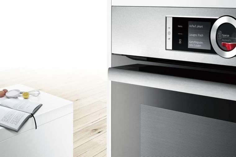 Bosch macht seine Backöfen intelligent: Die Serie 8 verfügt über einen Backsensor, ein integriertes Bratenthermometer und eine neue 4D-Heißluft. Damit sollen die Ergebnisse der im Ofen zubereiteten Lebensmittel noch besser werden. Die Steuerung des Ofens erfolgt über einen multifunktionalen Drehknopf. Ein Modell der Backofenreihe ist außerdem netzwerkfähig und kann über Wlan per App von Smartphone oder Tablet aus steuern.