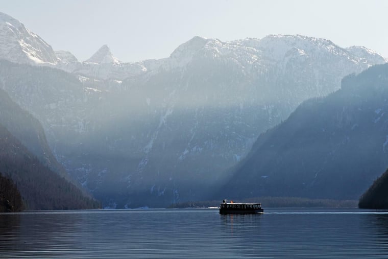 ...dem malerischen Königssee. Beliebt ist der Malerwinkel, ein Aussichtspunkt, von dem aus neben den hoch aufragenden Bergen die Wallfahrtskapelle St. Bartholomä zu sehen ist.