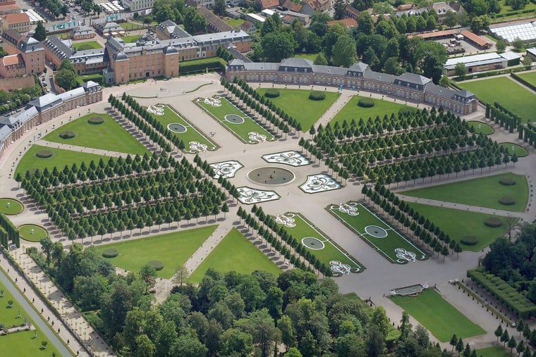 Aus der Luft lässt sich das wahre Ausmaß des Schlosses von Schwetzingen ermessen. Die ausgedehnte Anlage wird von Touristen sehr geschätzt: Es rangiert auf Platz 9 der größten Anziehungspunkte.