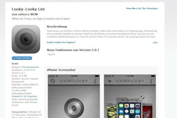 Ausgefallener schützt und enttarnt die App Looky-Looky neugierige Partner, Freunde oder Verwandte, die sich uneralubt das Handy schnappen. Drei Überwachungsmodi schützen dabei vor ungewollten Zugriffen. Beim Modus „Verwirrung“ wird ein falscher Screenshot des Homebildschirms gezeigt. Sobald sich daran jemand zu schaffen macht, schießt die Kamera ein Foto des Schnüfflers. Außerdem zeichnet das Programm alle Berührungen auf, damit der Handybesitzer später nachvollziehen kann, was sich die Person ansehen wollte. Im Modus „Abschreckung“ ertönt zusätzlich ein Alarmton, im Modus „Konfrontation“ wird eine Videobotschaft für den Spion abgespielt.