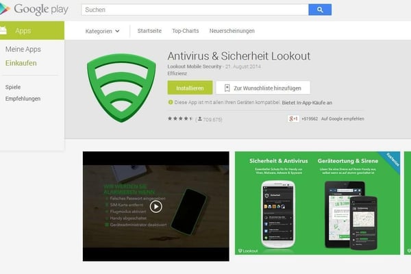 Dieses Antivirenprogramm bietet in seiner Android-Basisversion die sogenannte „Lock Cam“-Funktion an, die keine Spionage-Programme, sondern „echte“ Spione enttarnt, die nach dem Handy greifen. Sobald das Kennwort oder das Entsperrmuster für den Bildschirm drei mal falsch hintereiander eingegeben wird, schießt die Kamera ein Foto des Schnüfflers und schickt es per Mail an den Handybesitzer.
