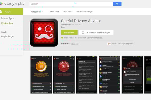 Download oder kein Download? Bei dieser Frage hilft die App Clueful Privacy Advisor. Dank einer Online-Datenbank, auf die sie zugreift, gibt sie darüber Auskunft, von welchen Apps ein niedriges, moderates oder hohes Risiko für die Privatsphäre ausgeht.