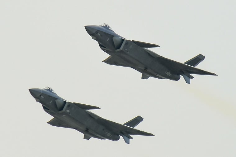 Chinesische J-20-Kampfjets. Ein solcher Tarnkappenjäger soll im Januar in taiwanisches Hoheitsgebiet eingedrungen sein.