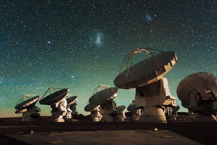 Der Teleskopverbund Atacama Large Millimeter Array (ALMA) in der Atacama-Wüste im Norden Chiles, ist die größte Radioteleskop-Anlage der Welt. 25 der insgesamt 66 Teleskope stammen aus Duisburg – von Vertex Antennentechnik.