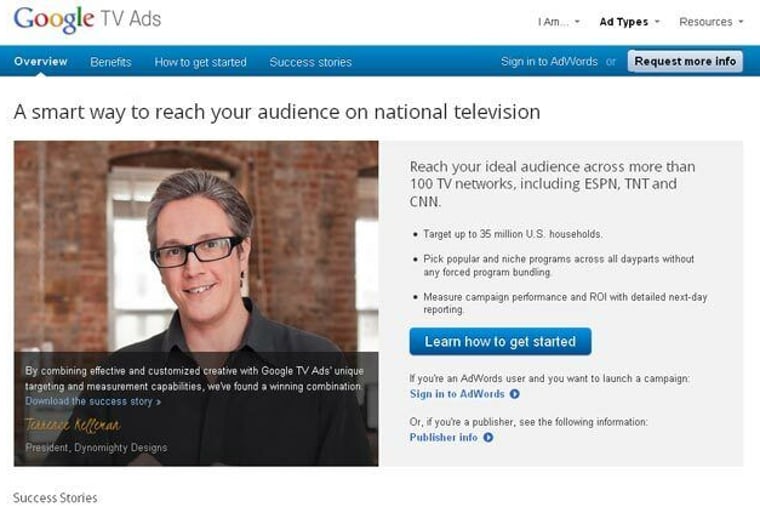 Der Geniestreich von Google war die Erfindung des ausgeklügelten Suchalgorithmus und die Verknüpfung mit passenden Textanzeigen. Damit revolutionierte das Unternehmen den Werbemarkt im Netz. 2006 versuchte Google auch Anzeigen für Zeitungen zu vermarkten, drei Jahre später wurde das Projekt wieder beerdigt, ebenso der Versuch, Radiowerbung zu verkaufen. TV-Spots vermarktet das Unternehmen jedoch weiter.