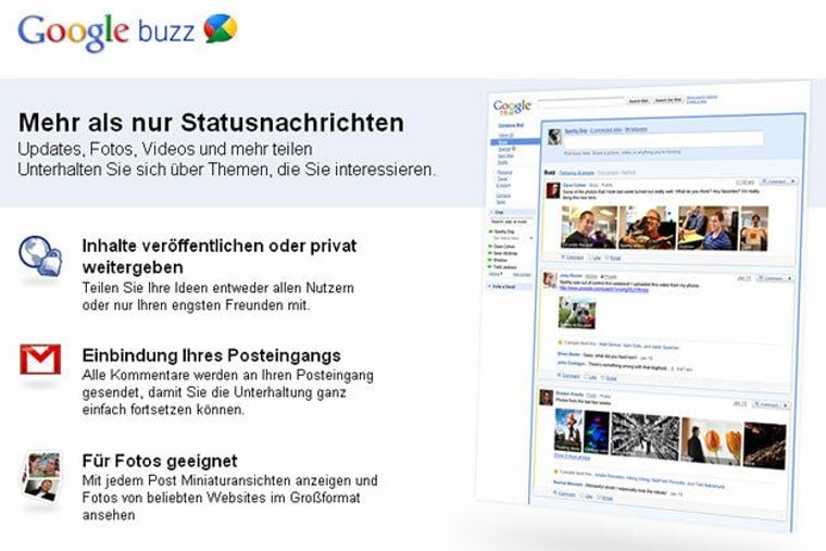 Im Februar 2010 startete Google sein Angebot Buzz, mit dem sich das Unternehmen gegen den aufstrebenden Rivalen Facebook wehren wollte. Doch der erhoffte Erfolg stellte sich nicht, stattdessen bekam Google eine neue Datenschutzdebatte aufgehalst. Denn der Konzern verknüpfte den Dienst mit seinem Mailprogramm und machte E-Mail-Kontakte automatisch zu Freunden. Auch die Nutzerzahlen stagnierten. So starb Buzz einen schnellen Tod und wurde Mitte Oktober 2011 wieder abgeschaltet. Kernfunktionen des Dienstes wurden in Googles neues Soziales Netzwerk Google+ implementiert.