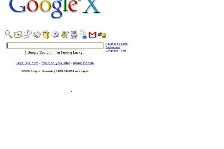 Google X sollte alle Google-Produkte in Form kleiner Icons über der Suchleiste anzeigen. Wenn der Nutzer mit der Maus darüber fuhr, sollten die Icons sich vergrößern. Die Idee setzte sich nicht durch - das Projekt wurde am 15. März 2005 aus der Wiege gehoben und starb bereits einen Tag später.