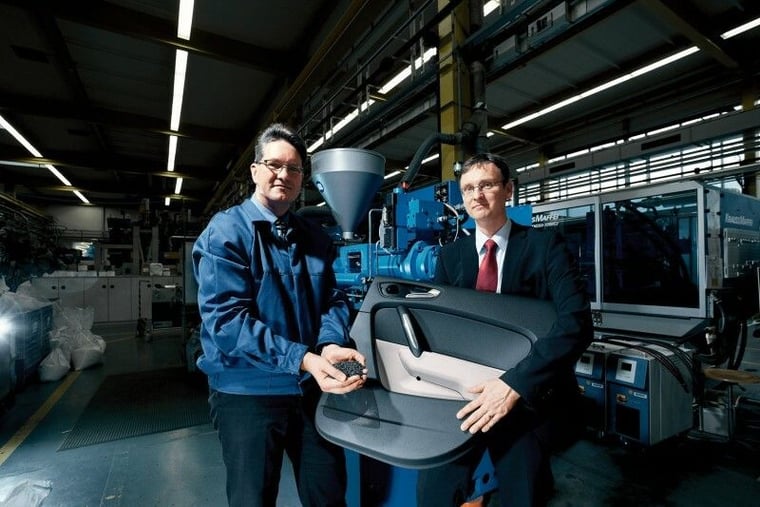 Ein weiterer Vorteil des neuen Plastikgranulats, das geschmolzen in Spritzgussmaschinen verarbeitet wird: Es kann in einem Arbeitsgang in Formen gebracht werden, die sowohl kuschelweiche als auch kantige Bereiche haben wie etwa das Gitter der Türlautsprecher. „Das ist mit bisherigen Kunststoffen unmöglich“, sagt Softell-Erfinder Alt. Bisher werden die Gitter extra gefertigt und anschließend in die Türfüllung montiert. In Zukunft könne dagegen die komplette Türverkleidung samt Lautsprechergitter am Stück entstehen. Auch das spart Kosten und Recyclingaufwand.