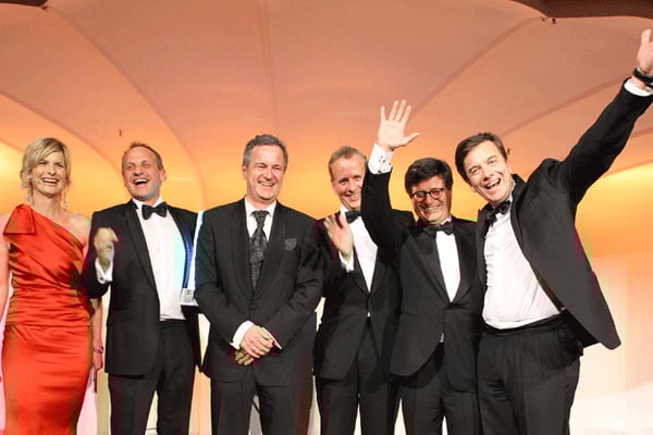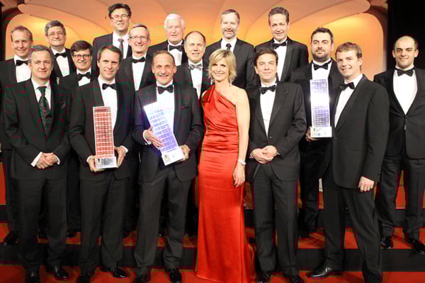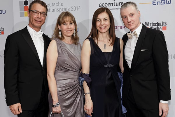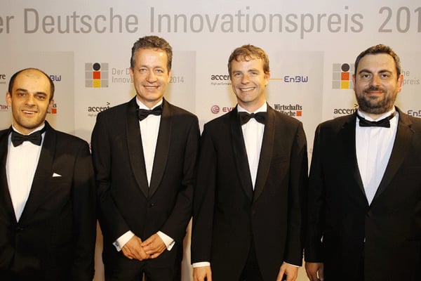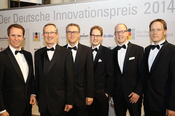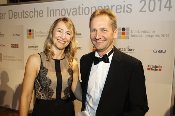 Gruppenbild mit Dame: Die Gewinner des Deutschen Innovationspreises 2014 samt Initiatoren