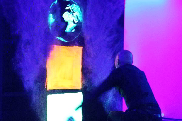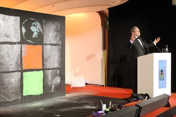Aktionskünstler Victor zauberte das Logo des Deutschen Innovationspreises an die Wand und stimmte auf die Preisgala ein.