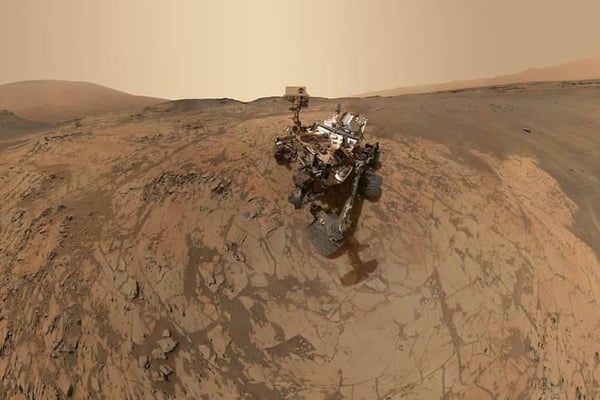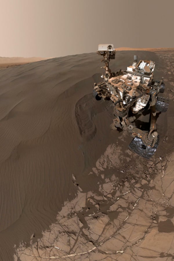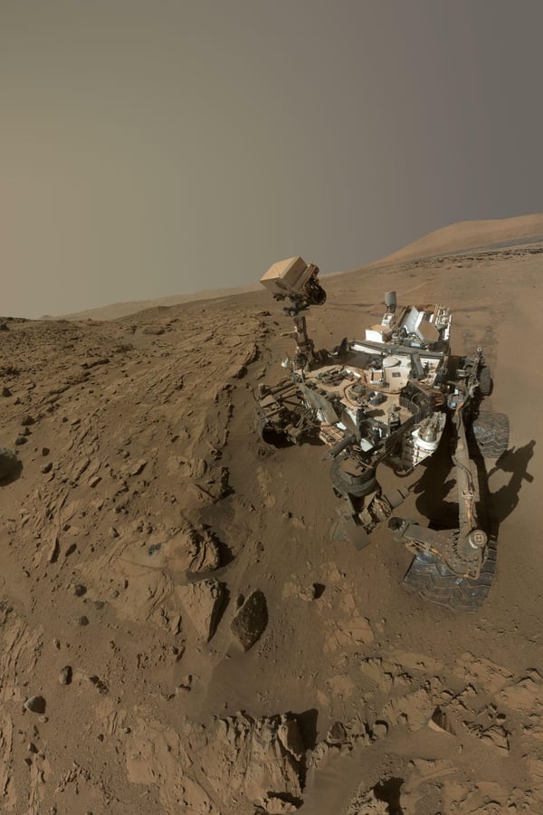 Auch Marsrover beherrschen die Kunst des Selbstportraits. Dieses ist im Zeitraum von April bis Mai 2014 entstanden und besteht aus Dutzenden Einzelaufnahmen, die mit Hilfe des Mars Hand Lens Imagers aufgenommen wurden.