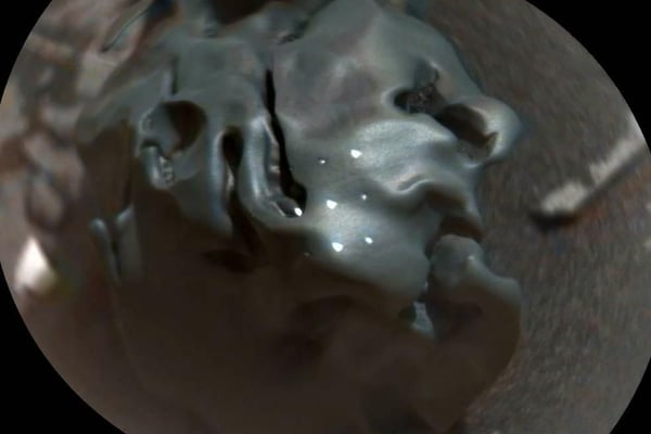 Curiosity hat bei seiner Erkundungstour auf dem Mars einen dunklen, Golfball-großen Meteoriten gefunden. Die hellen Punkte zeigen die Stellen, die der Rover mit seinem Laser beschossen hat, um seine Zusammensetzung zu erforschen. Die Analyse zeigt, dass es sich um einen Eisen-Nickel-Meteoriten handelt. Solche Objekte finden sich gelegentlich auch auf der Erde. Auch auf dem Mars konnten die Forscher schon solche Meteoriten entdecken, dieser war nun jedoch der erste, der mittels Laser-Analyse untersucht wurde. Der "Egg Rock" genannte Meteorit könnte schon seit Millionen von Jahren auf der Marsoberfläche liegen - die Nasa-Forscher wollen ihn nun weiter untersuchen.
