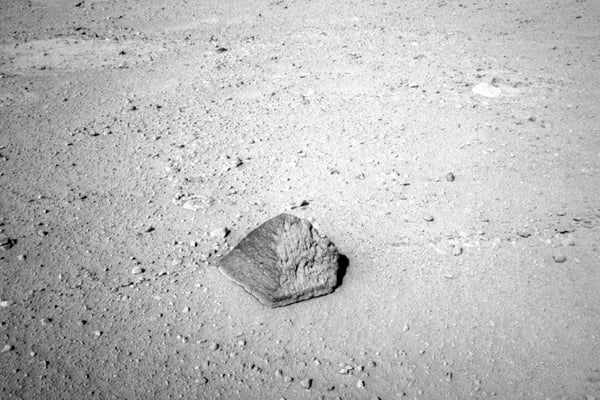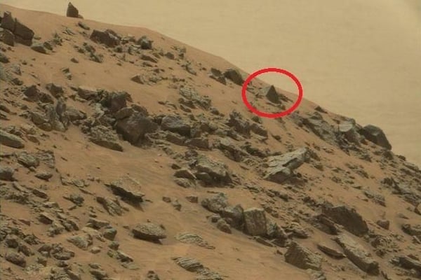 Ein Bild, das der Rover auf seiner Expedition schoss, sorgt für Wirbel im Netz und begeistert die Verschwörungstheoretiker. Es geht um die gleichmäßige, spitze Formation (im roten Kreis), die darauf zu sehen ist. Handelt es sich dabei etwa um eine Pyramide? Die Theorie einer untergegangenen Zivilisation, die einst monumentale Bauwerke auf dem Mars errichtete, versetzt Ufo-Fans in Ekstase. Ist hier die Spitze einer verschütteten Pyramide zu sehen und der Beweis für Leben auf dem Mars erbracht? Die Wahrheit dürfte viel langweiliger sein. Vermutlich handelt es sich einfach um einen von Wind und Staub ungewöhnlich glatt geschliffenen Stein. Den Rest übernimmt unsere Fantasie - wie zum Beispiel schon, als die "Bild"-Zeitung 2014 einen vermeintlichen Mars-Menschen entdeckte.
