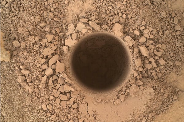 Vor dem Aufbruch hat "Curiosity" noch schnell ein weiteres Loch in einen Stein auf dem Boden des Mars gebohrt und Proben entnommen. Dank der Erkenntnisse aus dem ersten Bohrvorgang vor mehreren Wochen habe der zweite nur etwa ein Viertel der Zeit gebraucht.