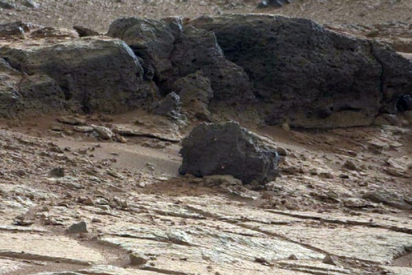 Auf Wasservorkommen schließen Forscher auch aus einem anderen Fund des Mars-Rovers: Der erste Stein, den Curiosity auf dem Roten Planeten untersucht hatte, unterscheidet sich von allen anderen bislang bekannten Marsgesteinen. Bei dem pyramidenförmigen, vulkanischen Felsen, der „Jake_M“ getauft wurde, handelt es sich um einen sogenannten Mugearit. Dieses Vulkangestein entsteht auf der Erde unter dem Einfluss von Wasser tief unter der Oberfläche.