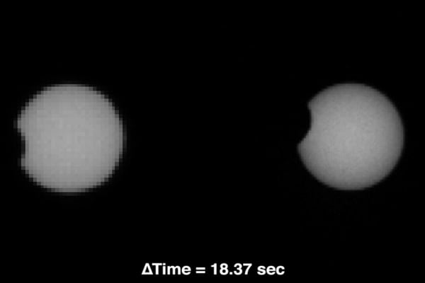 Curiosity hat Fotos von einer Sonnenfinsternis geschickt. Diese kommen auf dem Mars häufiger vor als auf der Erde. Grund dafür ist, dass sich zwei Monde in einer geringeren Distanz und schneller um den Mars drehen. Derzeit gibt es eine regelrechte Saison für Sonnenfinsternisse.