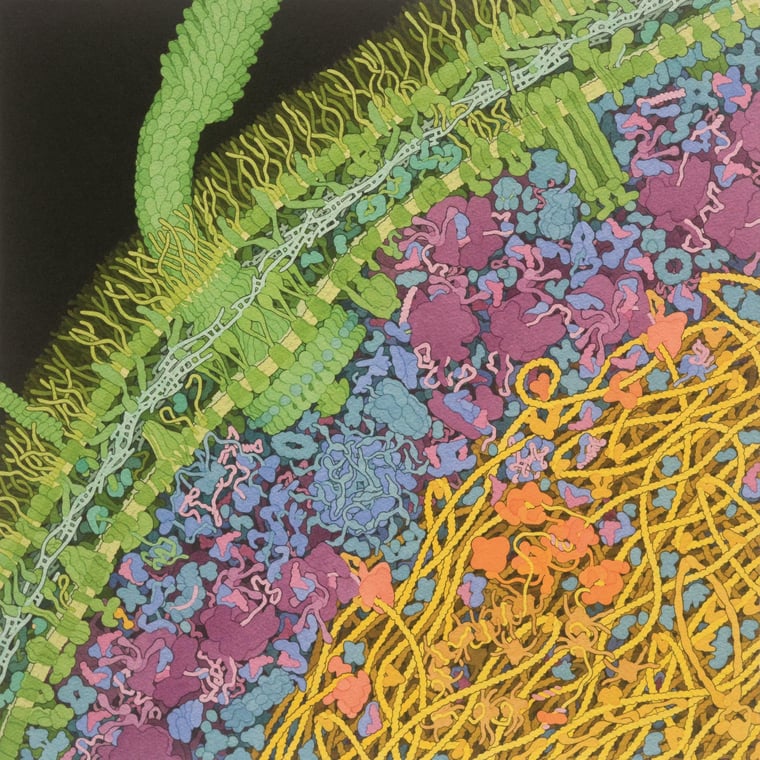 Fabrik aus Nanomaschinen: In jeder Zelle, wie etwa diesem Escherichia-coli-Bakterium, erfüllen Milliarden Proteine lebenswichtige Aufgaben.