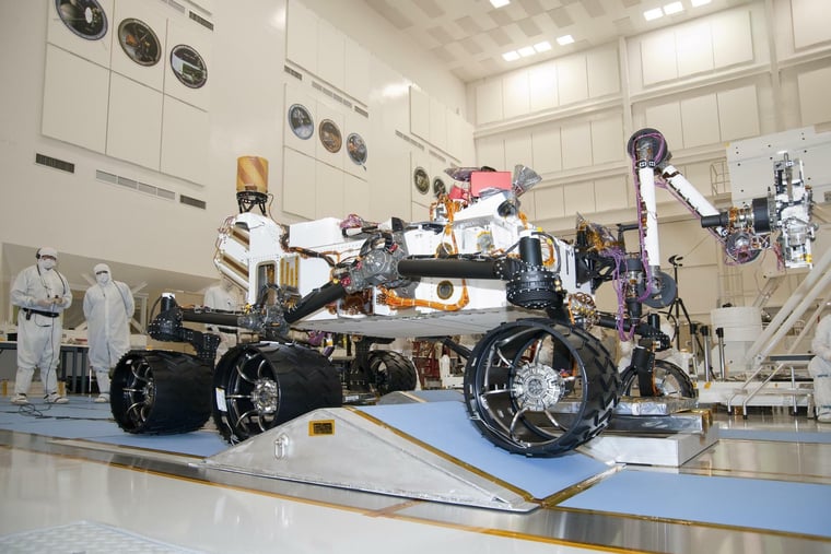 Für den eigentlichen Geländeroboter - Rover genannt - übernahm die Nasa viele Elemente der kleineren Vorgänger Spirit und Opportunity, die bereits 2004 auf dem Mars landeten.