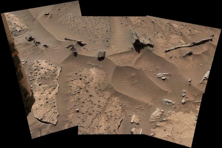 Die Nasa hat aus rund 900 Einzelfotos, die der Marsrover Curiosity gemacht hat, ein großes Panoramabild des Mars erstellt. Das Bild hat eine Auflösung von 1,3 Milliarden Pixeln. Curiosity benutzte drei verschiedene Kameras, um die Einzelbilder zwischen Oktober und November 2012 aufzunehmen. Zu sehen ist unter anderem die Sand-Formation namens "Rocknest", wo Curiosity seine ersten Staubanalysen durchführte. Im Hintergrund ragt der Mount Sharp empor.