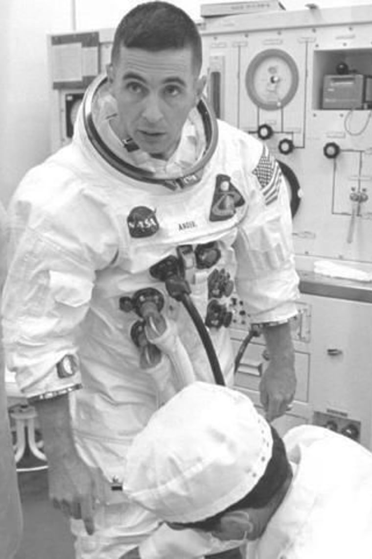 William Anders (Apollo 8) auf die Frage aus, wer die Raumkapsel vom Mond zurück zur Erde steuert.