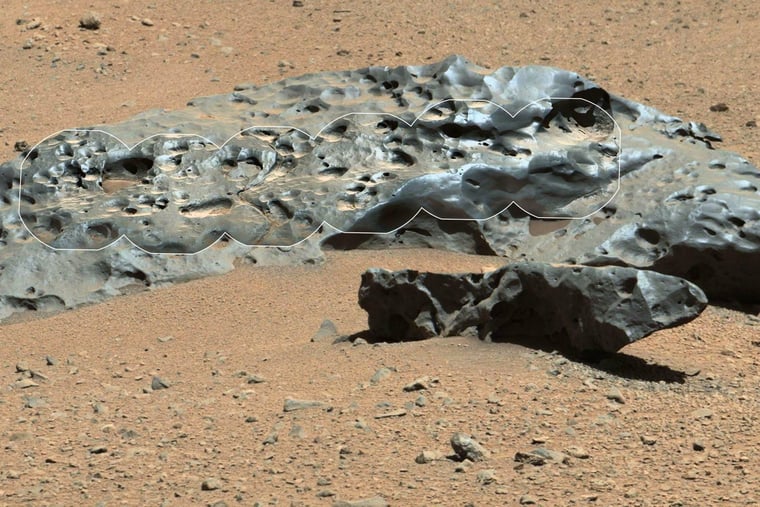 Am 25. Mai hat Curiosity einen großen Stein entdeckt, der sich als Eisenmeteorit herausgestellt hat. Er ist vergleichbar mit den von den Vorgänger-Rovern - Spirit und Opportunity - entdeckten Meteoriten. Der Meteorit ist rund zwei Meter lang.