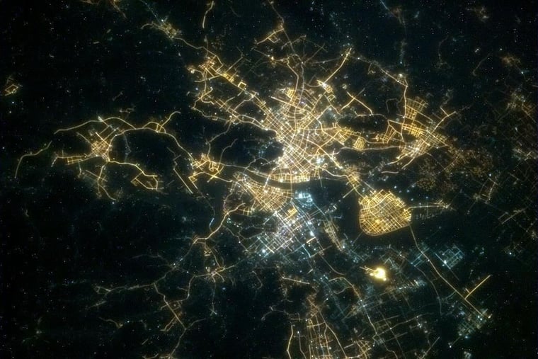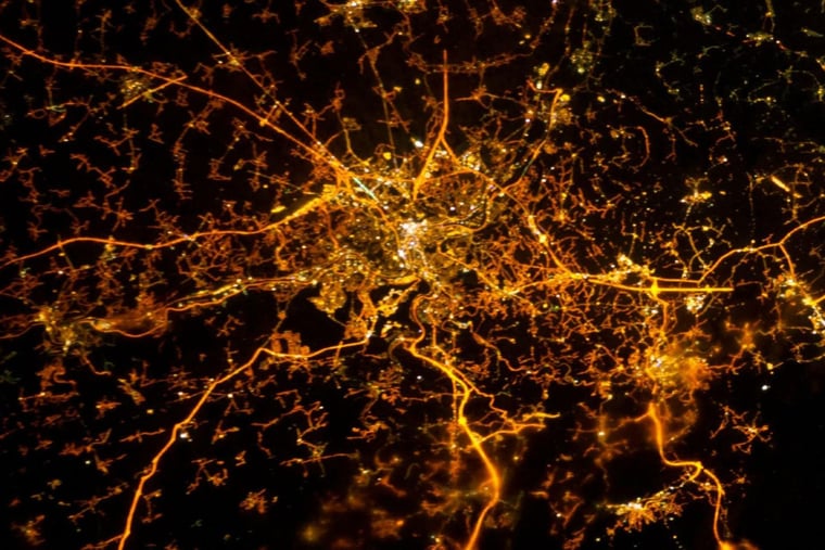 Alle Wege führen - in diesem Fall nicht nach Rom, sondern nach Lüttich. Astronauten der Raumstation ISS gelang dieser Schnappschuss der belgischen Metropole mit "NightPod", einem speziellen Instrument für Nachtaufnahmen.