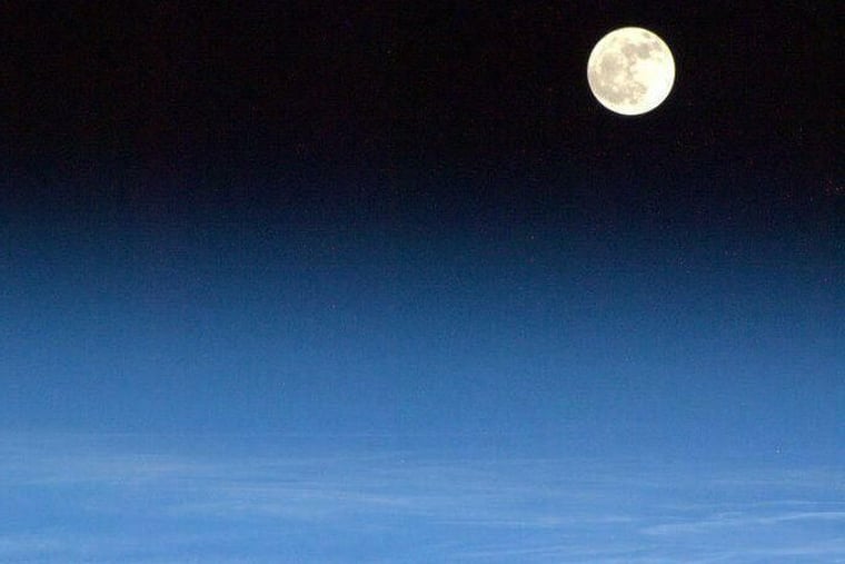 Seit Dezember schickt der kanadische Astronaut Chris Hadfield regelmäßig Bilder aus dem All. Hier geht der Mond über der Erde auf.