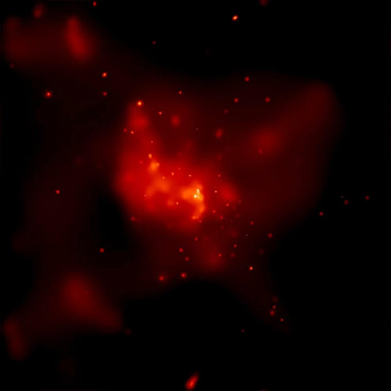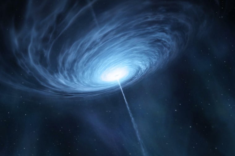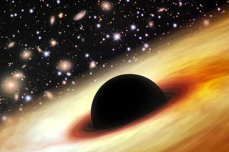 Bereits Ende Februar 2015 hatten Astronomen ein monströses Schwarzes Loch mit der Masse von zwölf Milliarden Sonnen entdeckt. Das Massemonster sitzt im Herz einer aktiven Galaxie, die so hell leuchtet wie 420 Billionen (420.000.000.000.000) Sonnen. Dieser sogenannte Quasar strahlt quer durch fast das gesamte sichtbare Universum zu uns, wie das internationale Team um Xue-Bing Wu von der Universität Peking im britischen Fachblatt "Nature" berichtet. Der Quasar ist nach den Messungen 12,8 Milliarden Lichtjahre von der Erde entfernt - sein Licht war also 12,8 Milliarden Jahre zu uns unterwegs. Damit sehen die Astronomen dieses Himmelsobjekt in einer fernen Vergangenheit, als das Universum erst 900 Millionen Jahre alt war. Damals endete in etwa das sogenannte Dunkle Zeitalter mit dem Aufflammen der ersten Sterne. Unklar ist, wie in der vergleichsweise kurzen Zeit vom Urknall bis zu dieser kosmischen Dämmerung ein so massereiches Schwarzes Loch entstehen konnte.