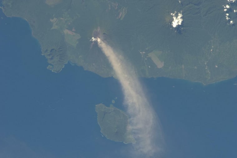 Der Vulkan Ulawun auf Papua-Neuguinea, gesehen aus der Perspektive eines Astronauten auf der ISS.
