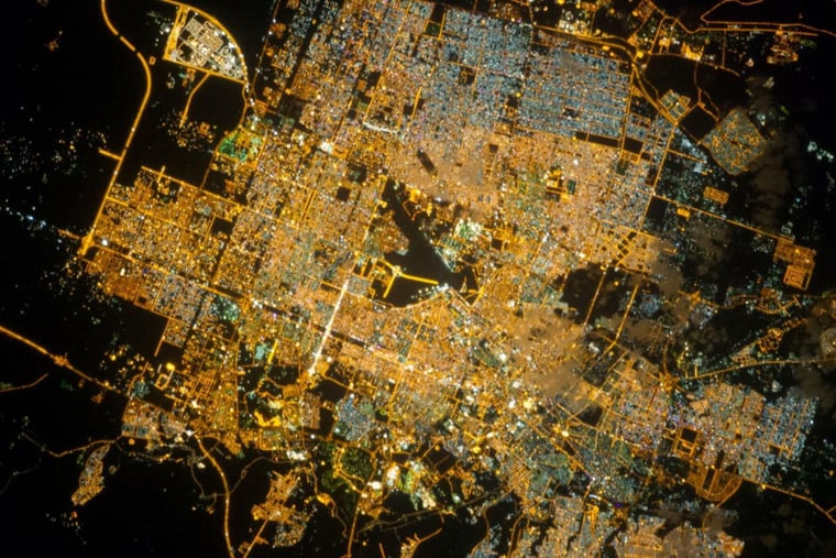 Auch die saudische Hauptstadt Riad wirkt bei Nacht aus dem All betrachtet wie ein Schmuckkästchen voller Edelsteine.