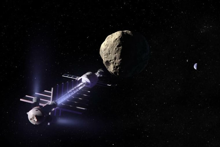Deutlich sanfter ginge es bei einem von den Nasa-Astronauten Ed Lu und Stanley Love vorgeschlagenen Verfahren zu: Sie wollen ein schweres Raumschiff in der Nähe eines potenziell gefährlichen Asteroiden "parken". Durch die Anziehungskraft des Schiffes würde der Brocken allmählich aus seiner verhängnisvollen Bahn gelenkt werden, so die Überlegung.