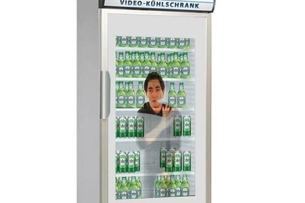 Der Getränke-Kühlschrank von plenti Media soll seine Besitzer mit einer intelligenten LCD-Anzeige unterhalten, auf der aktuelle Fotos und Videos aus Cloud und Netzwerk gezeigt werden können. "Die ideale Kombination von digitalen Bildern und realen Produkten" wirbt das Unternehmen.