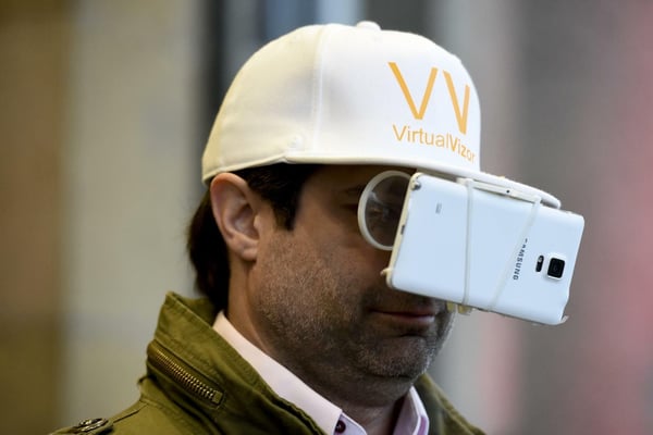 Eher skurril mutet dagegen diese Smartphone-Halterung an, bei der das Mobiltelefon direkt vor dem Gesicht getragen wird. Immerhin hat der Nutzer dann die Hände frei, wenn er vor die nächste Laterne läuft.