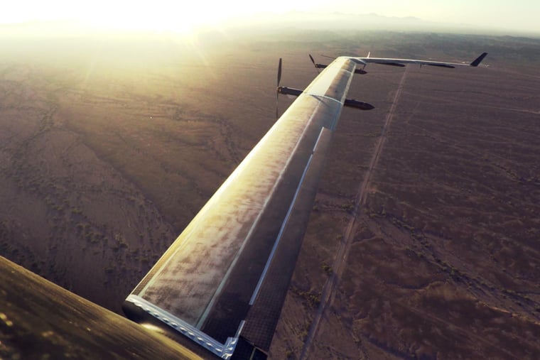Bilder aus dem Sommer 2016: Die Facebook-Drohne „Aquila“ bei einem Testflug im US-Bundestaat Arizona.