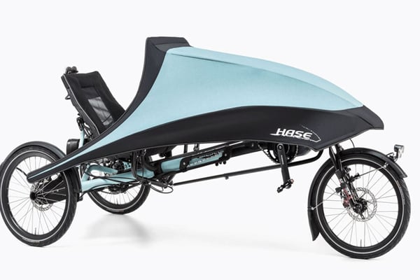 Das Trike vom Liegeradspezialisten ist nichts für Sonntagsradler, aber ein schönes Vehikel für Outdoor-Fans, die auch bei Wind und Regen Spaß haben. Der Rahmen ist aus Alu, die Federgabeln sind luftgedämpft. Ein Mittelmotor von Shimano hilft beim Treten. Das 8-Gang-Schaltwerk ist ebenfalls von Shimano.