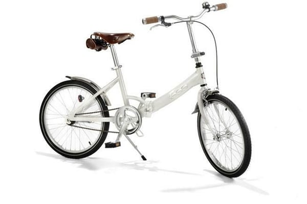 Kleines Auto, kleines Fahrrad – das Klapprad von Fiat will mit Charme gewinnen. Den erhält es durch den Ledersattel, an dem eine Werkzeugtasche baumelt und die Griffe in der passenden Optik.