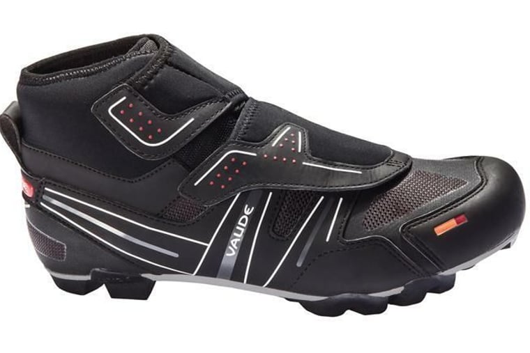 Der Vaude-Schuh für ambitionierte Mountain-Biker ist gefüttert und wasserdicht. Die Verwendung von Materialien wie Neopren, Sympatex und Primaloft kennzeichnet den Termatic als echten Hightech-Schuh. Das Primaloft-Innenfutter stammt laut Vaude zu 90 Prozent aus recyceltem Polyester. Die Einlegesohle ist herausnehmbar.