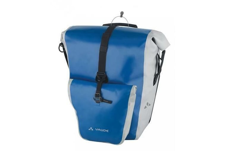 Wasserdichte Packtasche für die Befestigung am Gepäckträger. Abnehmbarer Schultergurt.