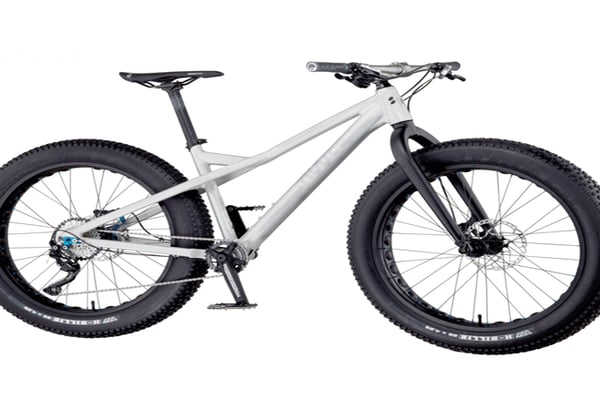 Massives Fatbike mit grobstolligen Reifen. Kommt auch mit gröbstem Gelände zurecht. Starrer Alu-Rahmen ohne Federung. Eine Federung ist auch nicht nötig, da die dicken Reifen ausreichend Dämpfung bieten.