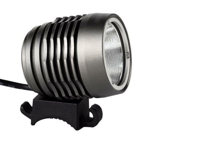Die LED-Leuchte wird am Helm befestigt und ist laut Hersteller mit 1.000 Lumen extrem hell. Gut geeignet für Fahrten in abgelegenen Gegenden oder Mountain-Bike-Touren in den Bergen. Breite Ausleuchtung. In der Großstadt weniger optimal, da entgegenkommende Verkehrsteilnehmer geblendet werden, zumal die Lampe keine StVZO-Zulassung hat. Allerdings lässt sich die Helligkeit in drei Stufen einstellen. Ladegerät und Akku sind im Lieferumfang, ebenso wie Befestigungsmaterial für den Helm. Eine Akkuladung reicht laut Datenblatt für vier Stunden bei voller Leistung.