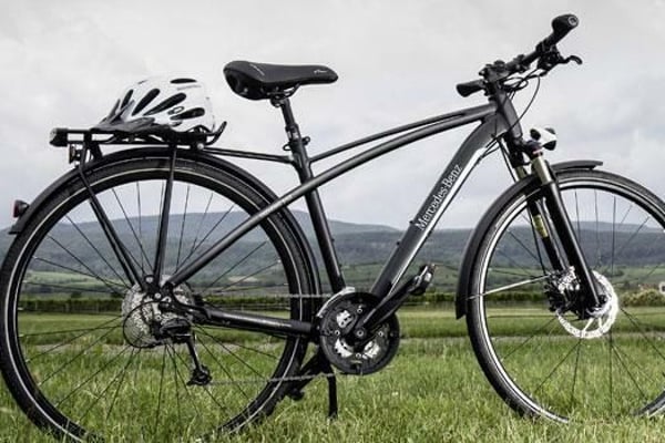 Es darf auch mal gemütlich sein. Das Trekkingrad von Mercedes ist mit Schutzblechen, Federgabel und Gepäckträger vor allem ein sehr vernünftiges Rad. Scheibenbremsen und Beleuchtung: Sicherheit geht hier über alles.