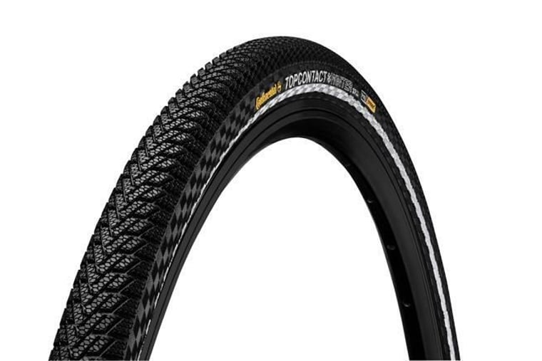 Der Continental Top Contact soll besonders gut für E-Bikes geeignet sein. Statt auf Spikes setzt der Continental auf ein spezielles Lamellenprofil. Durch eine Hightechfaser namens Vectran, die aus einem geschmolzenen Flüssigkeitspolymer nach dem Vorbild der Spinnenfaser gesponnen wird, soll der Reifen extrem reißfest und daher pannensicher sein.