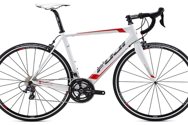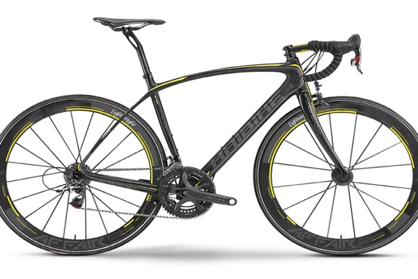 Straßenrennrad auf Carbon-Basis. Auch Gabel und Hinterbau sind aus Carbon. Schaltwerk und Felgenbremsen stammen aus der Shimano-Ultegra-Serie.