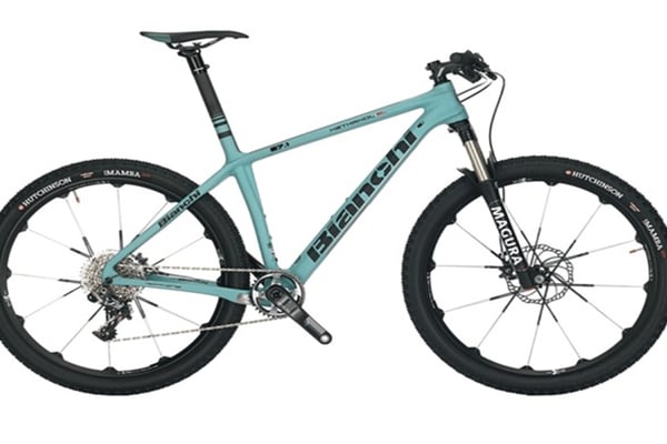 Cross-Country-Bike mit Carbon-Rahmen, Magura-Federgabel vorne und hydraulischen Scheibenbremsen, ebenfalls von Magura. Die 20-Gang-Kettenschaltung ist ausnahmsweise nicht von Shimano, sondern von Sram.