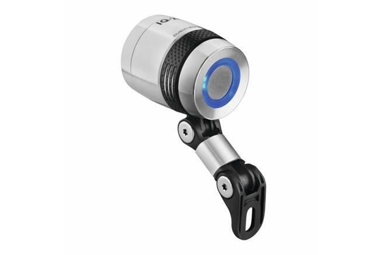 Frontscheinwerfer für kleine Nabendynamos (1,5 Watt). Bringt laut Hersteller 30 Lux. Mit Ein-Aus-Schalter und Standlicht.