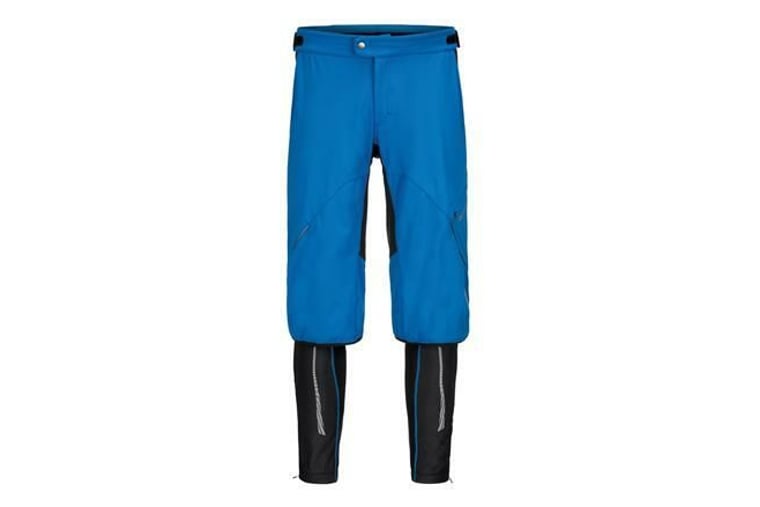 Hybrid-Hose für Mountain-Biker. Wird mit einer langen Radhose kombiniert. Am Oberschenkel ist die Minaki mit einer wärmenden Primaloft-Wattierung versehen. Wenn es mal zu warm wird, öffnet man die seitlichen Reißverschlüsse.