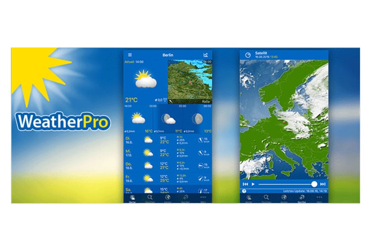Die für knapp drei Euro erhältliche Wetter-Applikation Weather Pro kommt vollständig ohne Werbung aus. Dafür zeigt sie die neuesten Wetterprognosen an - nach Belieben für die nächsten sieben Tage - an fast jedem Ort der Welt. Im Vergleich zur kostenfreien Konkurrenz Wetter.com bietet die Wetter-App von Meteo-Group einige Zusatzfunktionen an, darunter die Windgeschwindigkeit und -richtung sowie die erwartete Niederschlagsmenge. Wer noch detailliertere Auskünfte wünscht, kann sich mit der zusätzlich integrierten Radar- und Satelliten-Ansicht selbst ein Bild von den Wetteraussichten machen. Die Vorabinformationen zur Regenwahrscheinlichkeit können die Planung der Businesskleidung auf der Geschäftsreise durchaus erleichtern. Unterstützt wird die App sowohl von Android als auch von iOS.