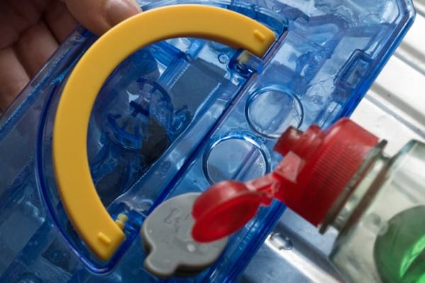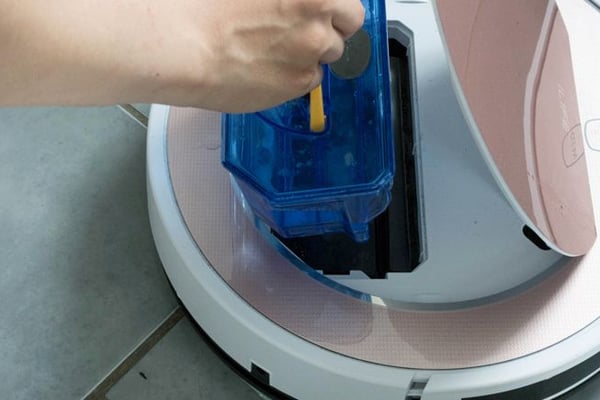 Um den Wischmopp des Ilife V7S zu benutzen, muss der Wassertank mit Wasser und Reinigungsmittel gefüllt werden. In den Tank passen 400 ml Flüssigkeit. Für die Reinigung der ganzen Fläche tauschten wir die Füllung in dem kleinen Wassertank jeweils einmal aus.